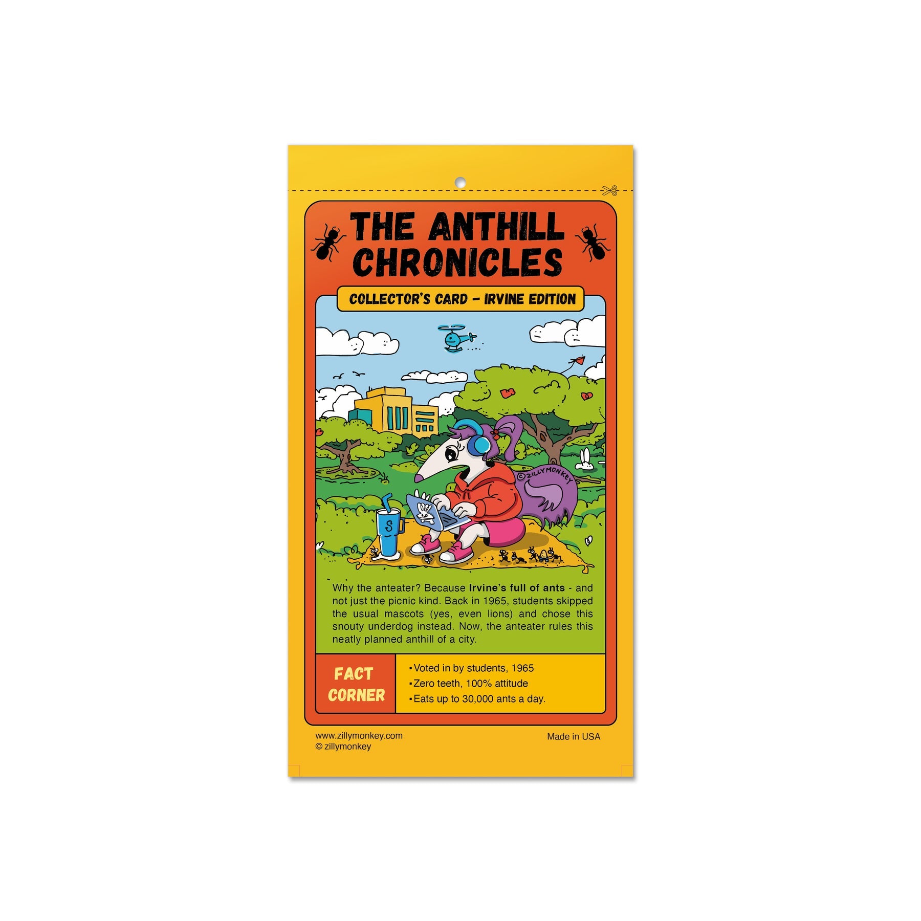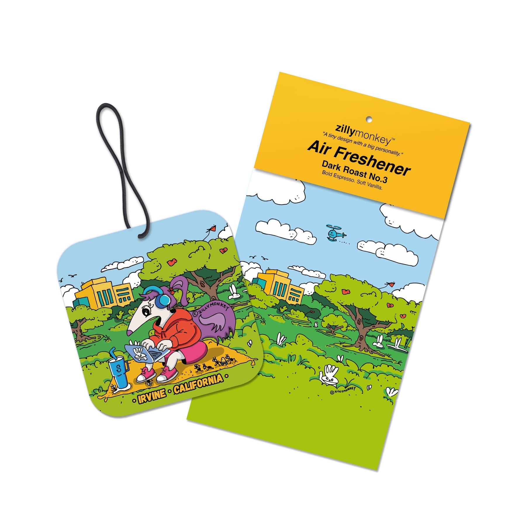 An early grind never smelled so good. This design-forward air freshener features a bleary-eyed anteater on campus, powered by caffeine and questionable decisions. Infused with a bold roast fragrance, it’s made for cars, dorm rooms, or anywhere that needs a little pick-me-up.